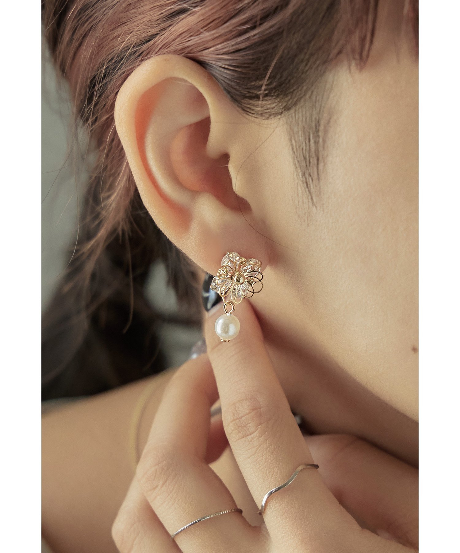 niana ビジューフラワーパールピアス 結婚式 お呼ばれ 成人式 アクセサリー ビーフラット アクセサリー・腕時計 ピアス ゴールド シルバー