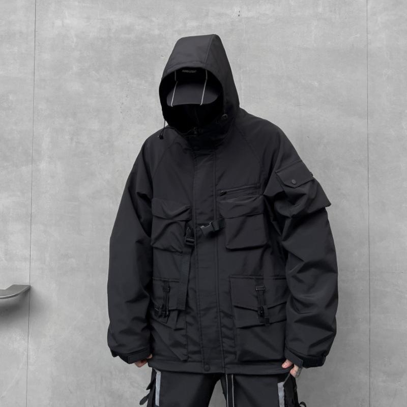 ジャケット 男性用 春秋 作業着 ミリタリー 多ポケット ブラック 黒 カジュアル アウター 耐摩耗性 撥水・素材機能: 耐摩耗性・カテゴリ: ジャケット・スタイル: 日本風ワーク・対象年齢: 18-24歳・襟の形: スタンドカラー・フィット: ゆったり・前立て: ジッパー・フード: フード付き・・柄: 無地・対象: 青少年・生地: 綿混紡・主素材: ポリエステル・裏地: 酢酸繊維・裏地素材: 酢酸繊維・適用シーン: カジュアル・ディテール: マルチポケット・裾のデザイン: ストレート・加工: 防しわ加工・着丈: 普通(50cm<着丈≤65cm)・ポケット: サイドシームポケット・着方: アウター・袖丈: 長袖・カラー: ブラック・サイズ: M.L.XL.XXL・袖のタイプ: ラグランスリーブ・対象性別: メンズ・