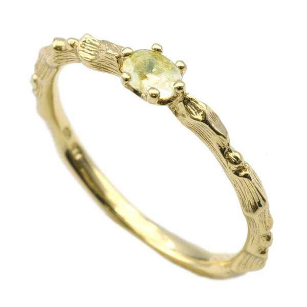 水滴がはねたときにできるミルククラウンからインスパイアされたデザイン。 丸くコロンとした爪でスフェーンの周りを縁取ります。 アーム部分はしなる小枝モチーフ。 木肌感をそのまま職人が繊細に表現いたしました。 合わせたのはナチュラルな印象にピッタリのスフェーン。 幻想的な色彩を持つスフェーンは光の屈折によりファイアという七色の発色を見せる事が特徴的。▲サムネイル画像をクリックで大きい画像が変わります。 ナチュラルな風合いの小枝リング 人気シリーズのカラーレディスリング。 水滴がはねたときにできるミルククラウンからインスパイアされたデザイン。 丸くコロンとした爪でスフェーンの周りを縁取ります。 アーム部分はしなる小枝モチーフ。 木肌感をそのまま職人が繊細に表現いたしました。 合わせたのはナチュラルな印象にピッタリのスフェーン。 幻想的な色彩を持つスフェーンは光の屈折によりファイアという七色の発色を見せる事が特徴的。 シンプルなストレート一粒リングは少しの個性で魅せるリングに。 デイリーユースに多様しやすいので他のリングとのレイヤードや普段使いのアクセントにおすすめです。 《スペック》 ■本体素材 K18イエローゴールド(サンプル=本体) スフェーン(約)4×3mm 1石 ■サイズ 直径(約):16.3mm 幅(約):1.2-4.2mm 厚(約):0.8-2.9mm 重(約):1.73g ※表記はすべて石枠込みとなっております。 ※サンプルサイズ11号 ■対応金種: プラチナ900、K18ホワイトゴールド、K18イエローゴールド、K18ピンクゴールド、K18シャンパンゴールド、K18グリーンゴールド、K10ホワイトゴールド、K10イエローゴールド、K10ピンクゴールド ■備考: ※金種変更や特注加工をご要望の際は、お気軽にお問い合わせ下さい。 ★カラーレディスリング一覧はこちらからどうぞ!