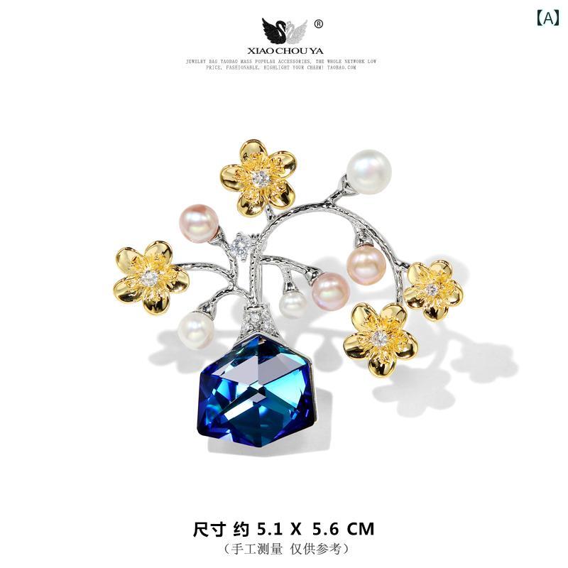 レディース アクセサリー 淡水パール ブローチ おしゃれ セレモニー オーストリア クリスタル 花瓶 スカーフ バックル 精巧 両用 固定
