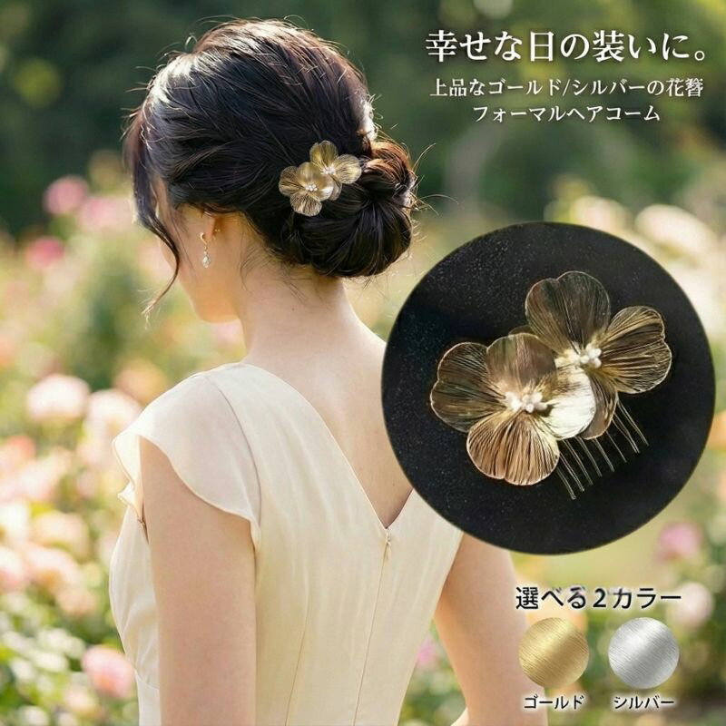 髪飾り 和装 留袖 フラワー 花 かんざし 結婚式 成人式 卒業式 洋風 着物 留袖 振袖 訪問着 色打掛 袴 浴衣 ゴールド シルバー ヘアアクセサリー お呼ばれ 前撮り 日本髪 20代 30代 40代 50代