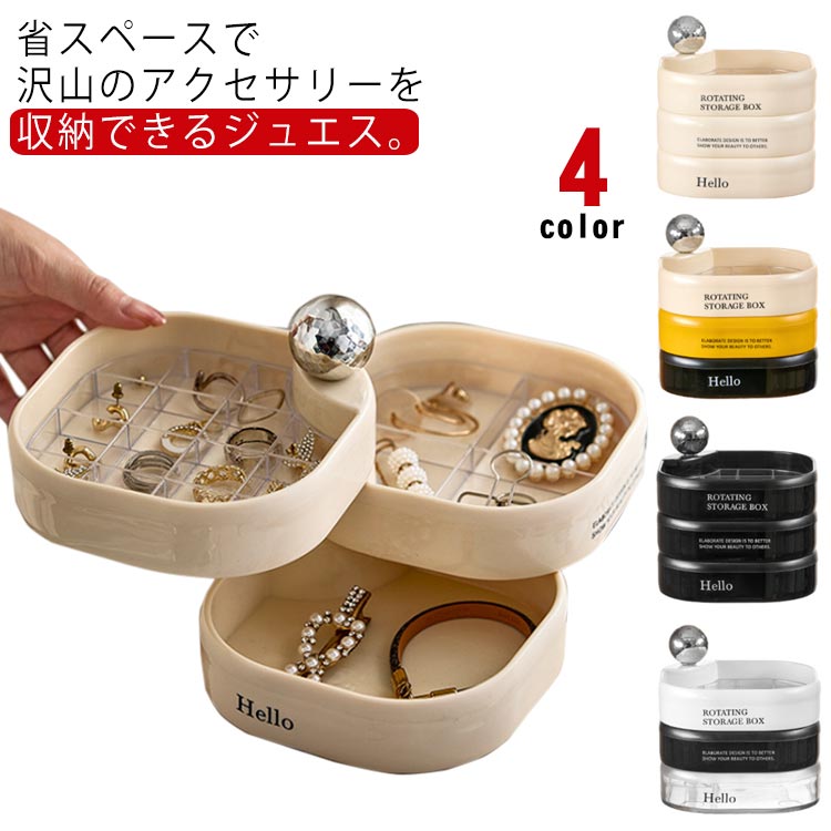 ジュエリー収納 ジュエス 3段式 アクセサリーケース 軽量 省スペース 360°回転 大容量 小物入れ 宝石箱 ネックレス 指輪 腕時計 髪飾り ピアス プレゼント 化粧台 洗面所 送料無料
