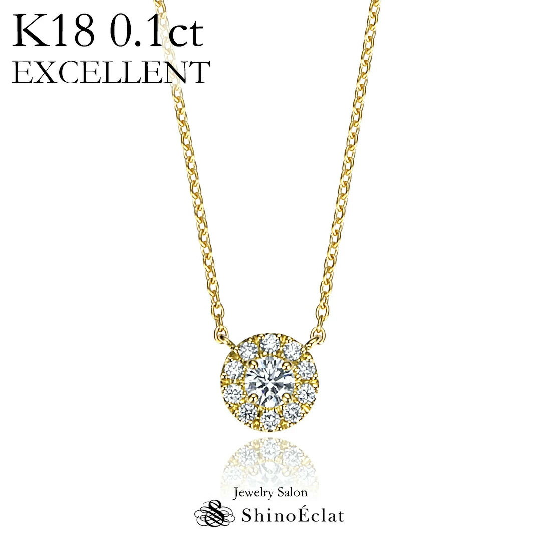 【在庫あり】K18 ダイヤモンド ネックレス “フルール” トリプルエクセレントカット レディース ゴールド シンプル diamond necklace gold ladies 18k 18金 ダイヤ ペンダント 0.1カラット ヘイロー 彼女 誕生日 結婚記念日 プレゼント
