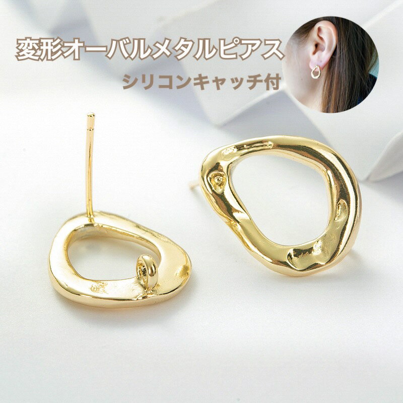 変形オーバルのメタルピアスです。 ゆがみデザインが個性的でオシャレな雰囲気。 使いやすい小さめサイズで耳元のワンポイントになります。 裏側にカン付きのため、ピアスパーツとしての活用やアレンジもOK! 大きめのパーツやストーン・パールを付けてもカワイイ♪ ハンドメイド作品にもおすすめのアイテムです。 【カラー】 ゴールド 【素材】 ニッケルフリー ポスト:シルバー925 【サイズ】 17mm×13.5mm ゲージ:20G カン内径:約1.5mm 【価格】 480円/両耳 シリコン入キャッチ付き ※アレルギーには個人差があります。 ※ポストのS925は柔らかく、変形しやすい素材です。 配送時の衝撃等により変形する場合がございます。 また、使用しているうちに変形した場合は優しく力をいれて元に戻してください。 ・モニター環境や製造時期により、多少色味が異なる場合がございます。 ・サイズには若干の誤差がある場合がございます。 ・稀に小さな傷・歪みがある場合がございます。 ・商品改良の為、予告なく若干の仕様変更をする場合がございます。