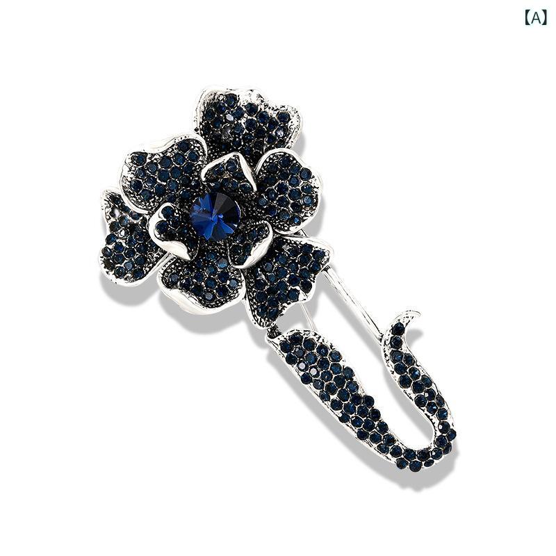 ブローチ レトロ アンティーク調 牡丹 椿 フラワーモチーフ 大ぶり ラインストーン クリスタル 合金製 セーター カーディガン ショール ストール 羽織り留め ピン コサージュ(x2)