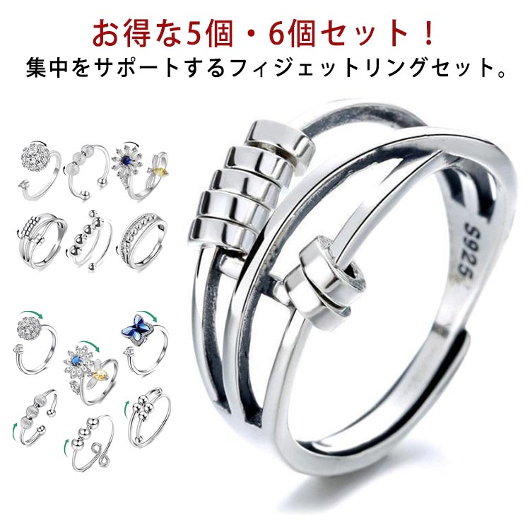 不安リング 指輪 5個セット 6個セット 不安解消 回転リング ストレス解消 リング 調節可能 積み重ね可能 指輪 スピンアクセサリーリング フリーサイズ スピナーリング 指輪 アクセサリー ジュエリー 大ぶり 豪華 金属 リング ビーズ付き 不安解消 不安を和らげるリング