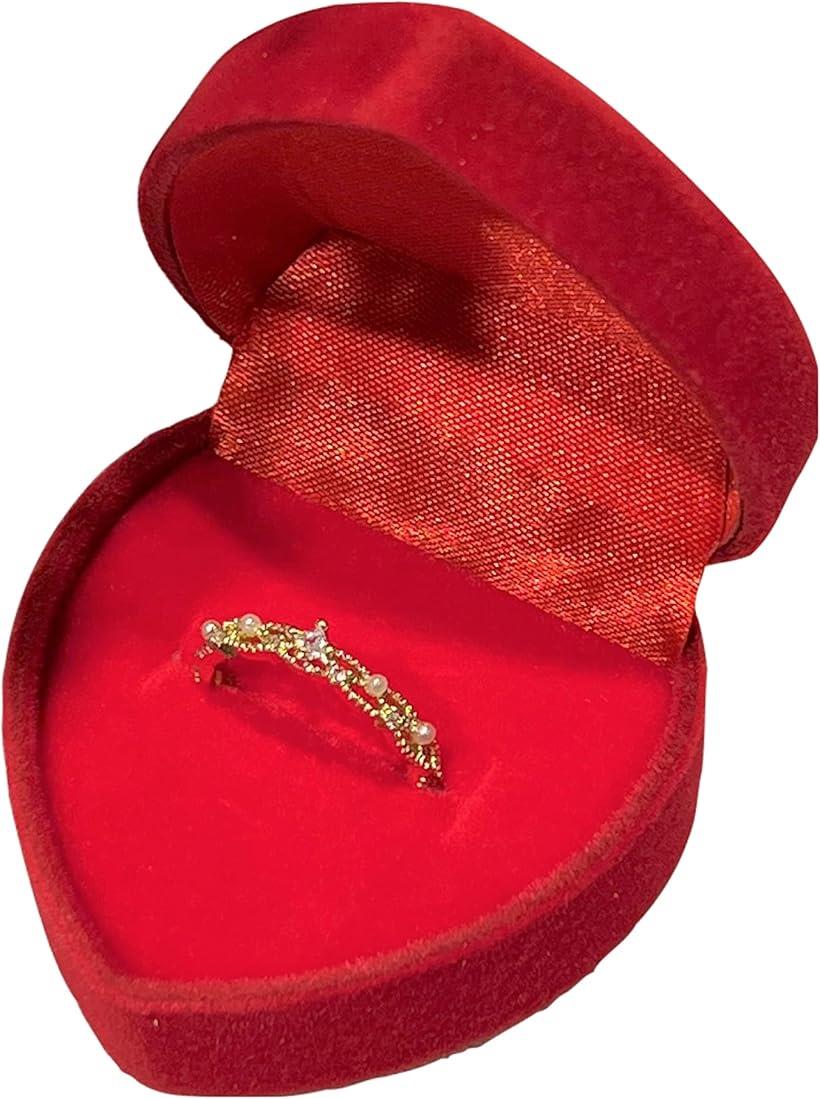 ファッションリング ハートのケース付き ゴールドカラー 1.パール(ゴールド, 開口)