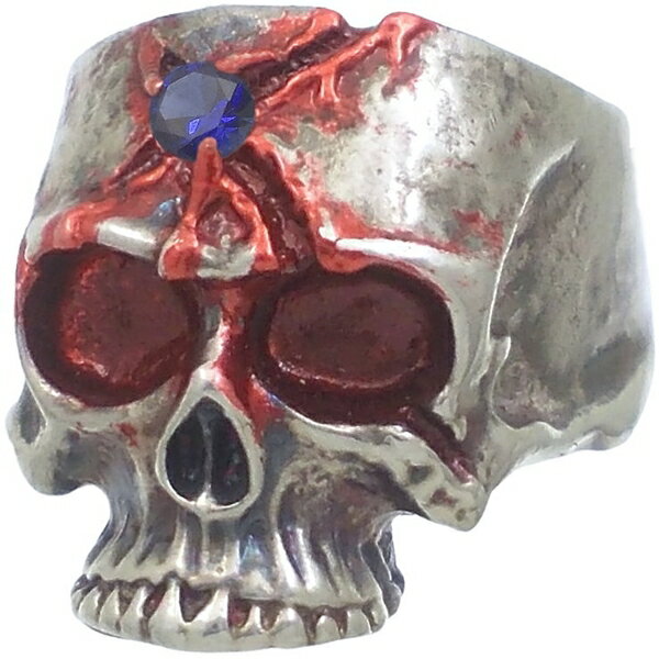 ■RustySkull/ラスティスカル【 リング 指輪 】 └【タイプ】 シルバー925 ギフト 誕生石 ガーネット アメシスト アクアマリン エメラルド 緑寿 ムーンストーン ルビー サファイア ペリドット トルマリン ローズクォーツ トパーズ タンザナイト スカル骸骨ドクロ【素材:シルバー】 [要確認]メーカー取寄せ時2-4日/メーカー欠品時の納期約2週間(在庫、詳細納期は要問合せ) ★ダメージスカルの傷口にセラミックレッドをコーティングしたバースデーストーンリング。 (最大幅24mm最小幅7mm、15-25号) 深くえぐられたクロスラインの傷に誕生石をセッテイング、ドロリとした生々し血のしたたりが石まで届かんばかりに流れる造形は必見! 燻し仕上げの上からコーティングした上で手作業でダメージ箇所を仕上げ、目や深い傷の部分は燻しと相まって血が凝固したような生々しい赤に仕上がっている。