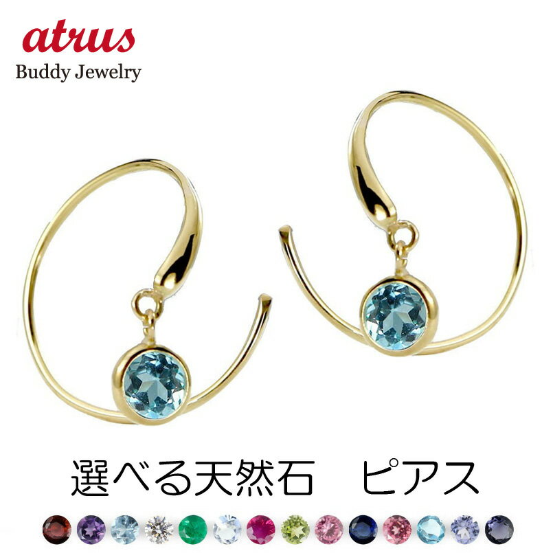 18金 ピアス レディース 天然石 揺れる 大ぶり フック 誕生石 K18 イエローゴールド スイング 両耳用