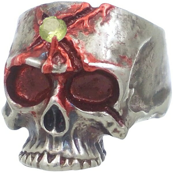 (8月)ペリドットラスティ"ブラッド"スカル シルバーリング(指輪)誕生石