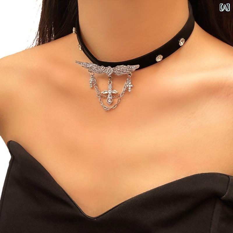ネックレス レディース 女性用 天使の翼 フリンジ ラインストーン 合金製 電気メッキ加工 個性的 高級感 上品 エレガント デザイン性 デイリーユース 鎖骨チョーカー