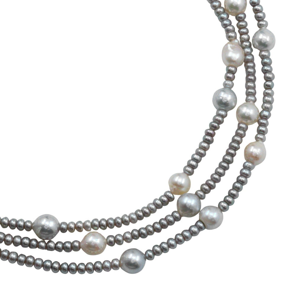 【スーパーセール10%OFF対象】バロック ベビーパール ネックレス 3連 シルバー×真珠 約33.1g Baroque Baby Pearl レディース【中古】Aランク