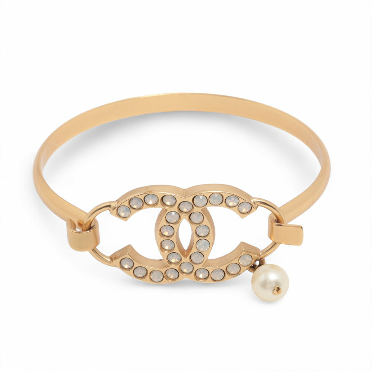 【中古】シャネル ココマーク 02P ブレスレット GP×ラインストーン×フェイクパール ゴールド バングル