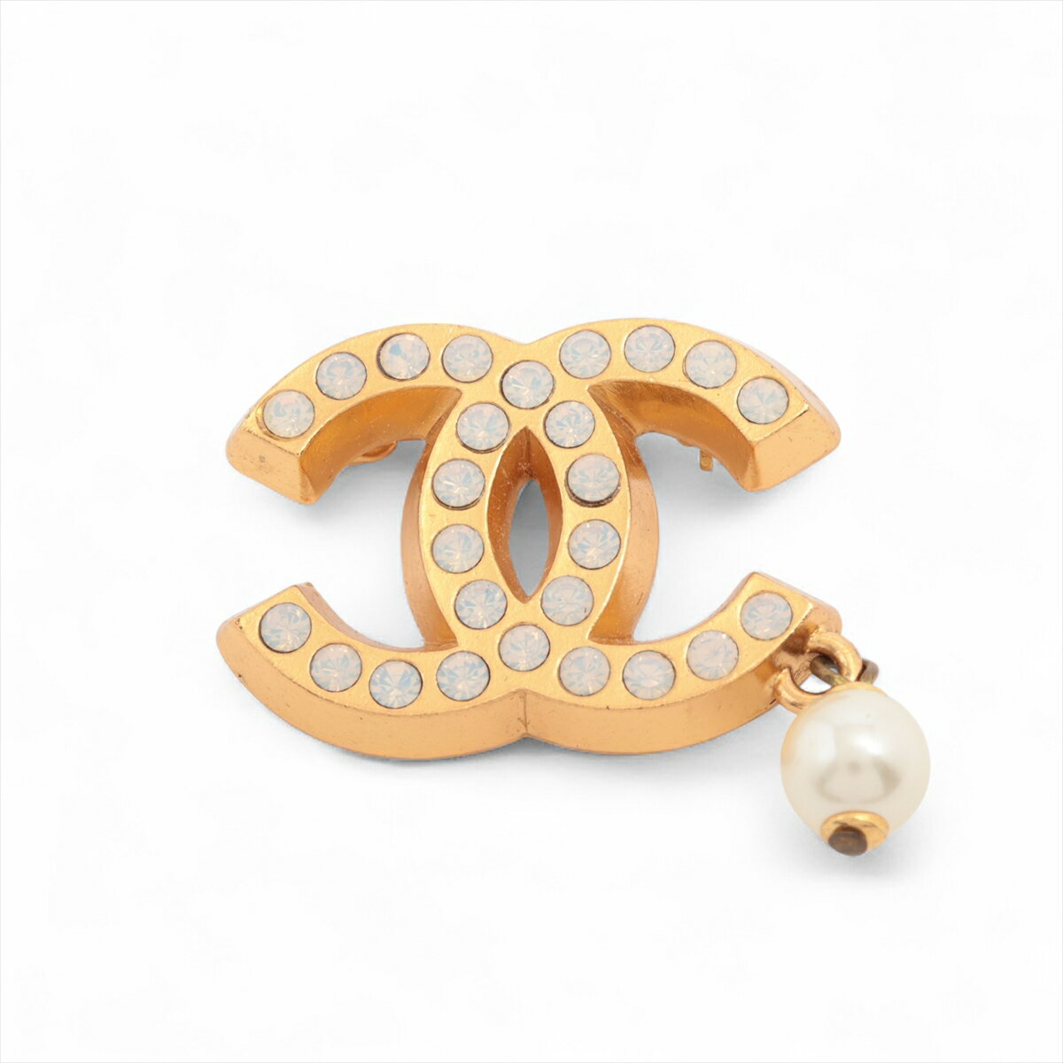 【中古】シャネル ココマーク 02P ブローチ GP×ラインストーン ゴールド