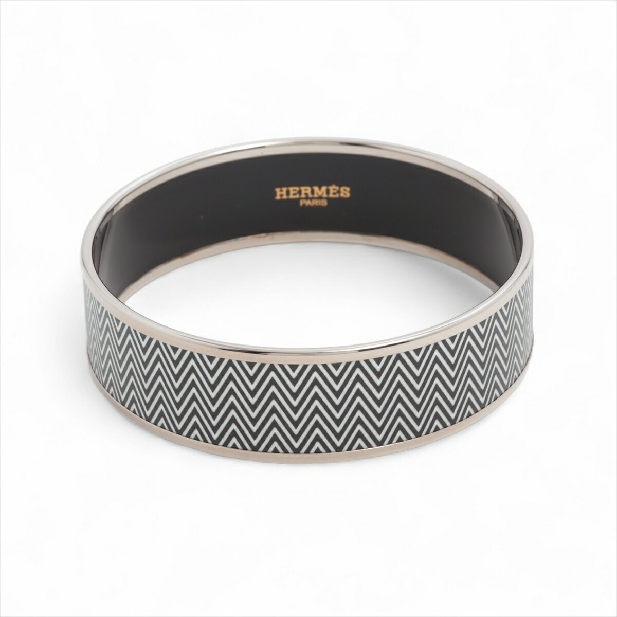 【中古】エルメス エマイユPM バングル GP ブラック×ホワイト