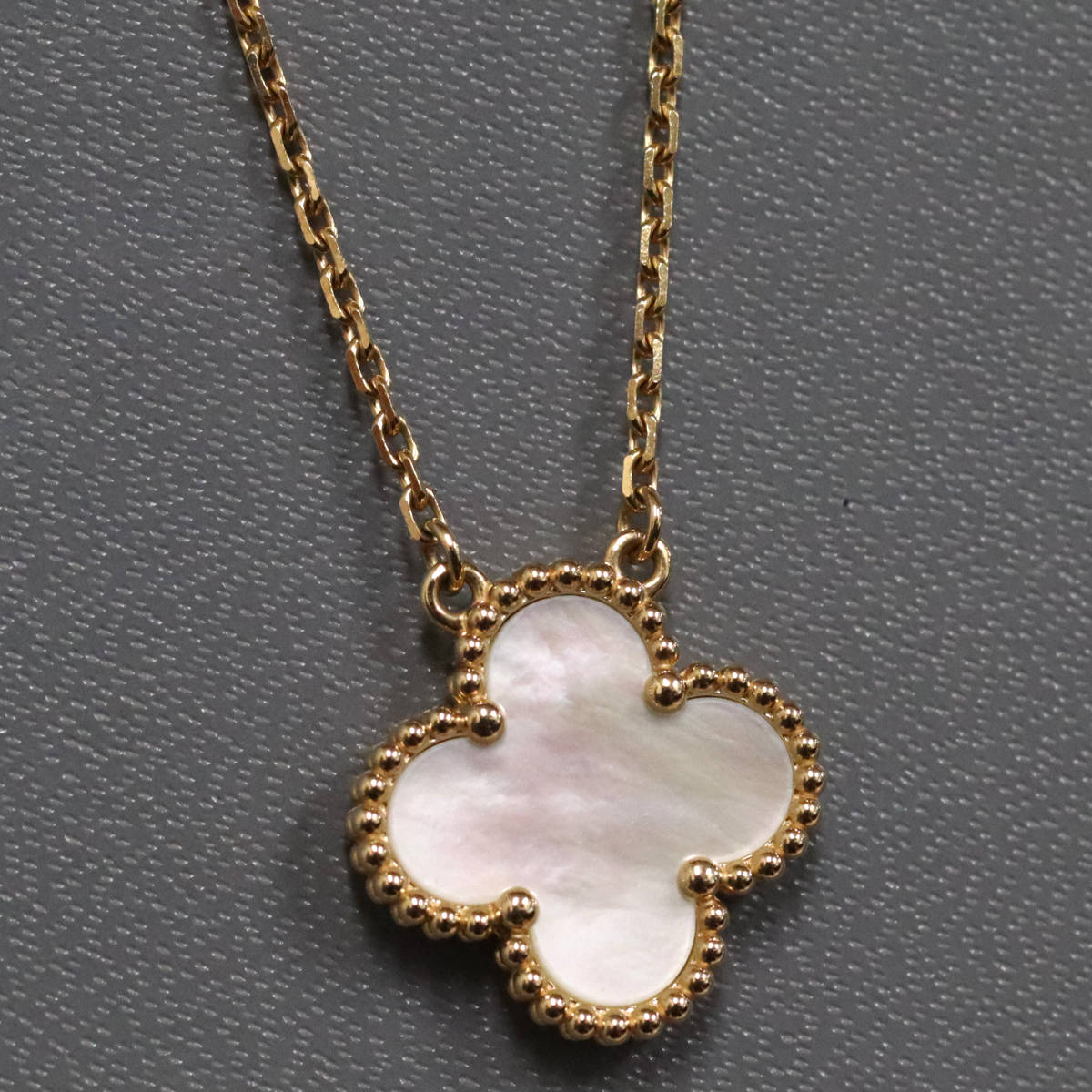 【中古美品】ヴァンクリーフ&アーペル ヴィンテージアルハンブラネックレス マザーオブパール 750YG 5.1g(VCARA45900)保証書付き イエローゴールド ペンダント ホワイトシェル