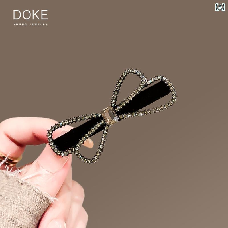 ヘアクリップ レディース 髪留め ラインストーン 黒 リボン 蝶結び 上品 エレガント サイド 前髪 ほつれ髪 ダックビルクリップ 多用途 普段使い パーティー オフィス