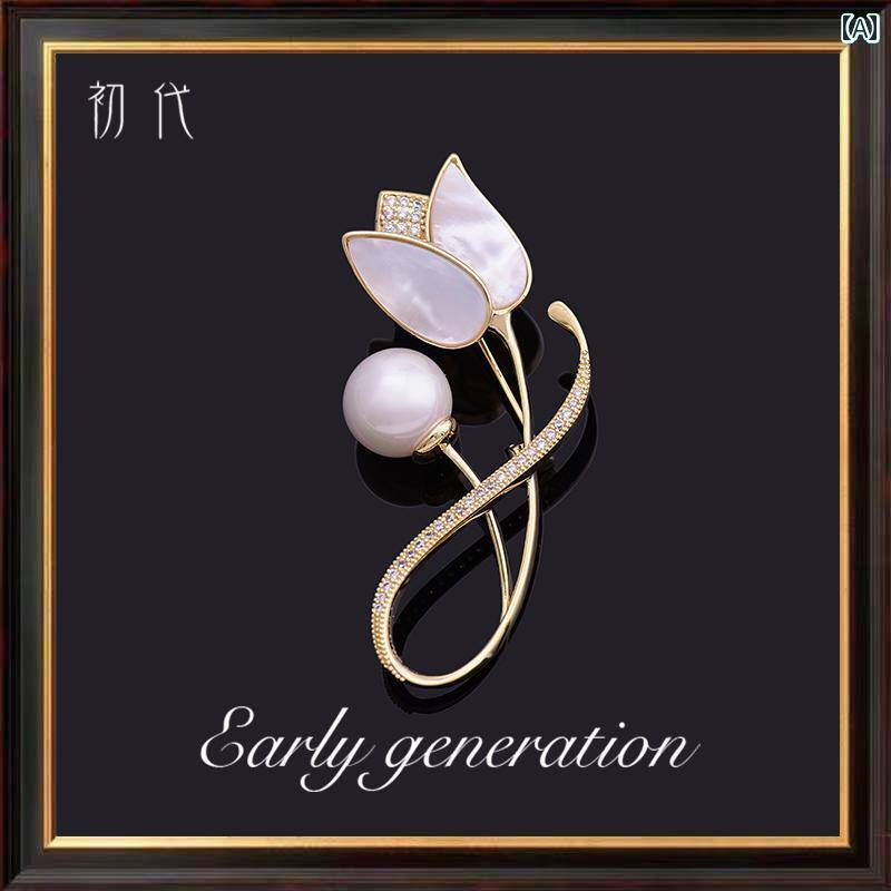 アクセサリー パール ジュエリー チューリップ ブローチ 女性用 韓国 ファッション 高級 マザーオブパール コサージュ スーツ コート ハイエンド アクセサリー