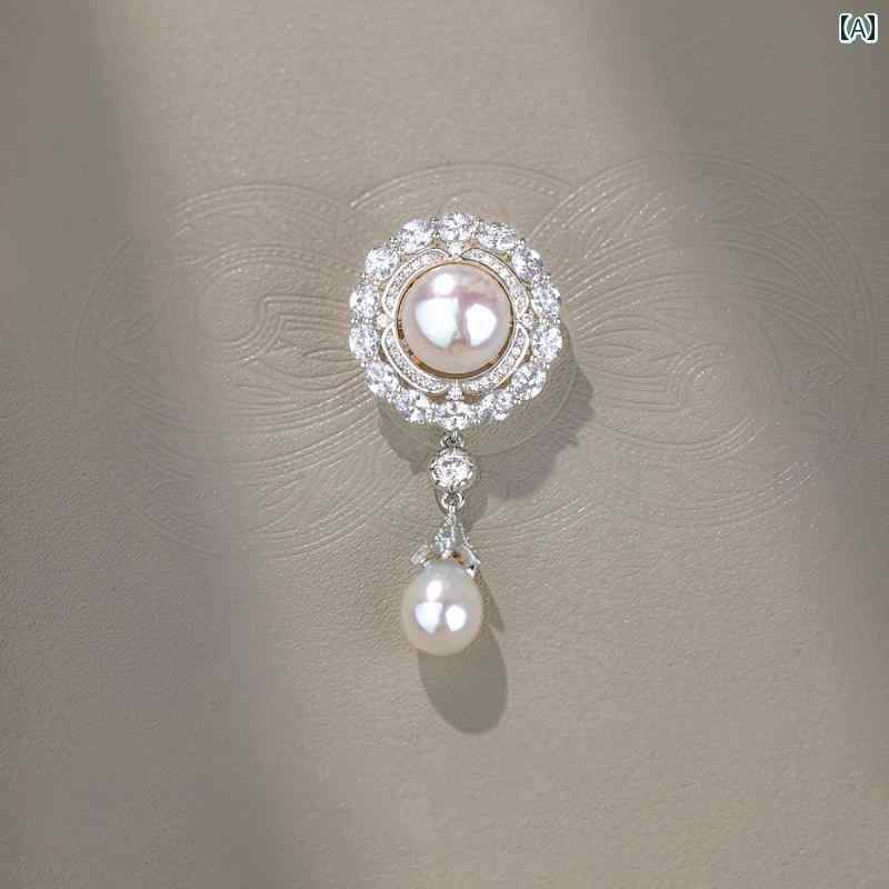 セシリア ン 宮殿 スタイル 淡水 パールラインストーン ブローチ ネックレス ペンダント ライト 高級 テクスチャ 女性
