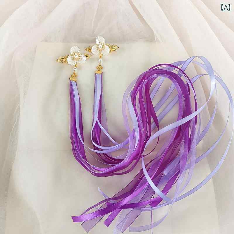 ヘアアクセサリー 古代 スタイルの 頭 飾り リボン バック プレッシャー 取り外し 可能な 長い タッセル 妖精の ストリーマー ヤオヤ オの 髪 飾り 漢 服の 髪 冠 ヘア ピン ブルー