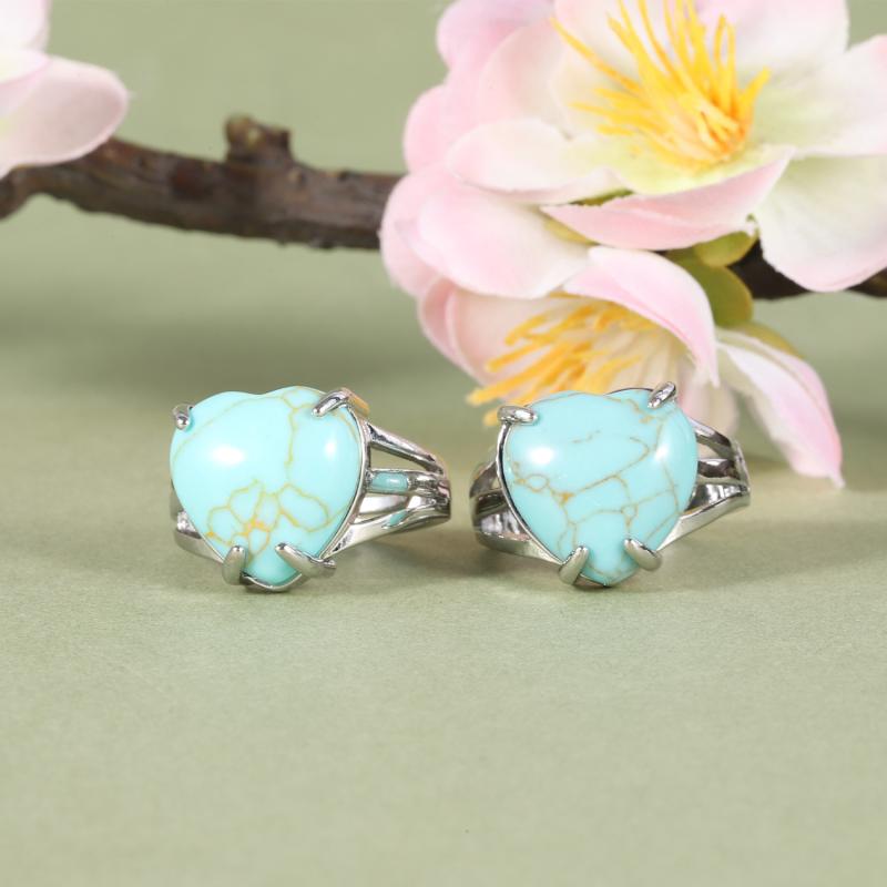 指輪 男女兼用 合成 ターコイズ ハート オープンリング ジルコニア 幾何学模様 ファッション 普段使い かわいい 白K色