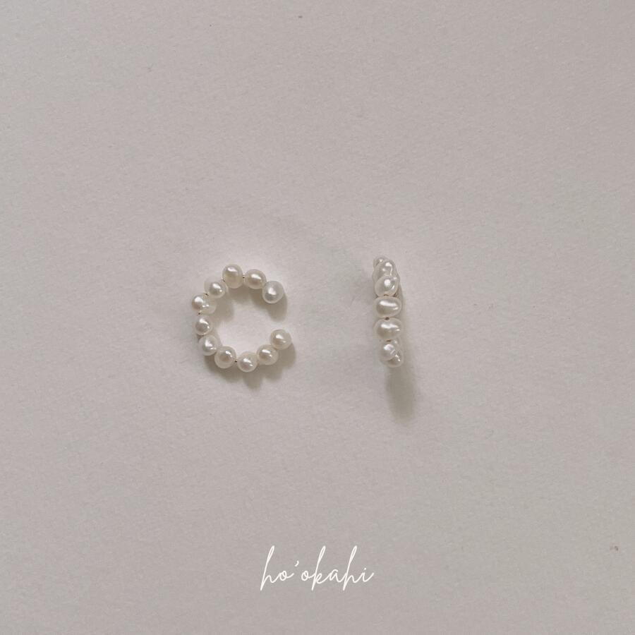 小粒の淡水パールをふんだんに使用したイヤーカフです。 すっきりと上品なデザインなので、イヤーカフ初心者さんにもおすすめです。 小ぶりですがとても華やかなため、イヤーカフのみでもコーディネートのアクセントに。 ひと粒ひと粒、色や形が異なる淡水パール。 貴方だけの耳元をお楽しみください。 - パール 素材 :淡水パール サイズ:約18×18mm カラー:Gold/Silver ご不明な点がございましたらお気軽にお問い合わせください