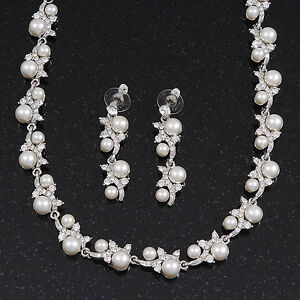 【送料無料】アクセサリー ネックレスガラスセットスロープガールフレンドcristal de novia perlas decollar y pendiente conjunto en metal plateado de gota