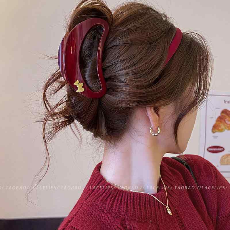 レディース ファッション レディース オシャレ 綺麗 アクセサリー レトロ Ancora レッド ヘア クリップ高 レベル クリップ シンプル サメ クリップ後頭部 アクセサリー