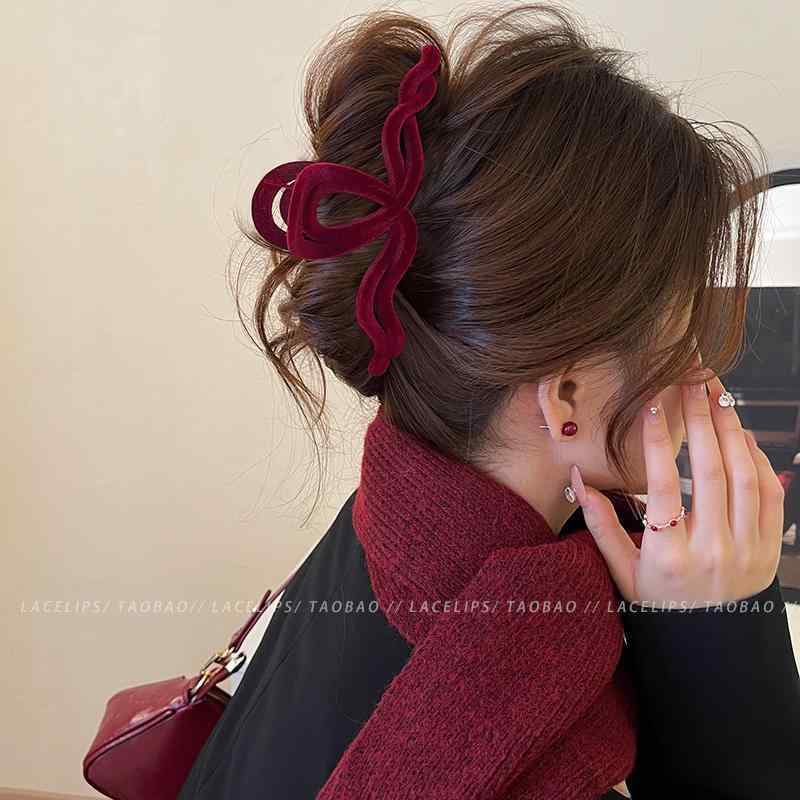 レディース ファッション レディース オシャレ 綺麗 アクセサリー Ancora レッド ベルベット グラブ クリップ大 サメ クリップ ヘア 後頭部 秋冬 アクセサリー