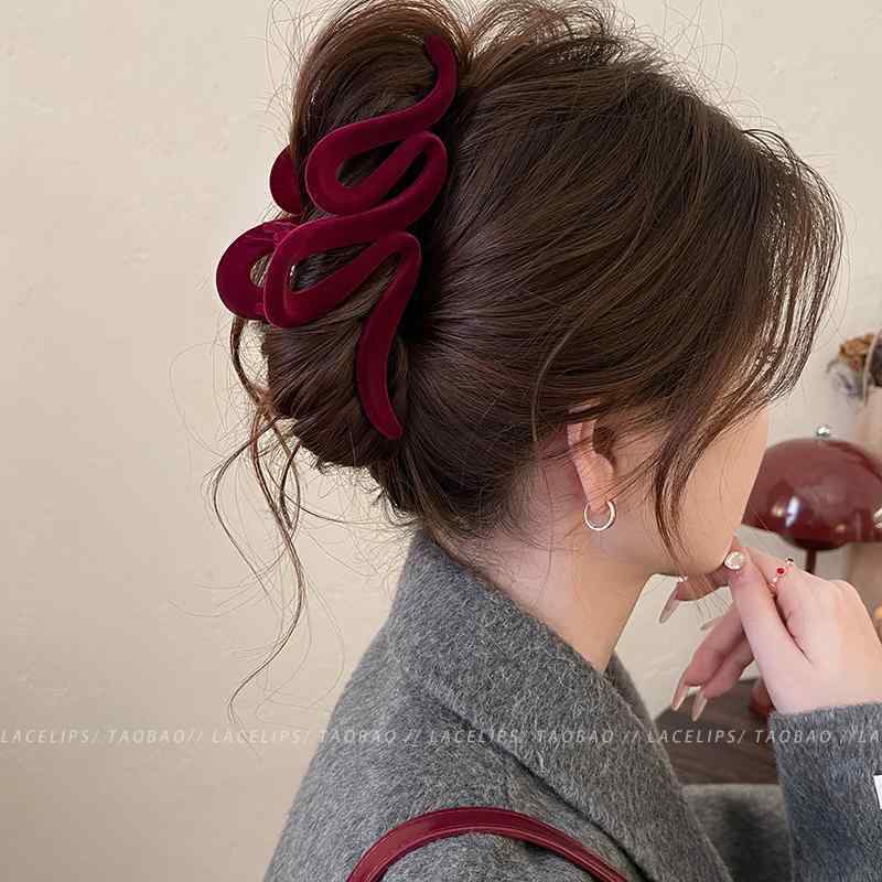 レディース ファッション レディース オシャレ 綺麗 アクセサリー Ancora レッド ベルベット ライン ヘア クリップ大 サメ クリップ ハイエンド アクセサリー