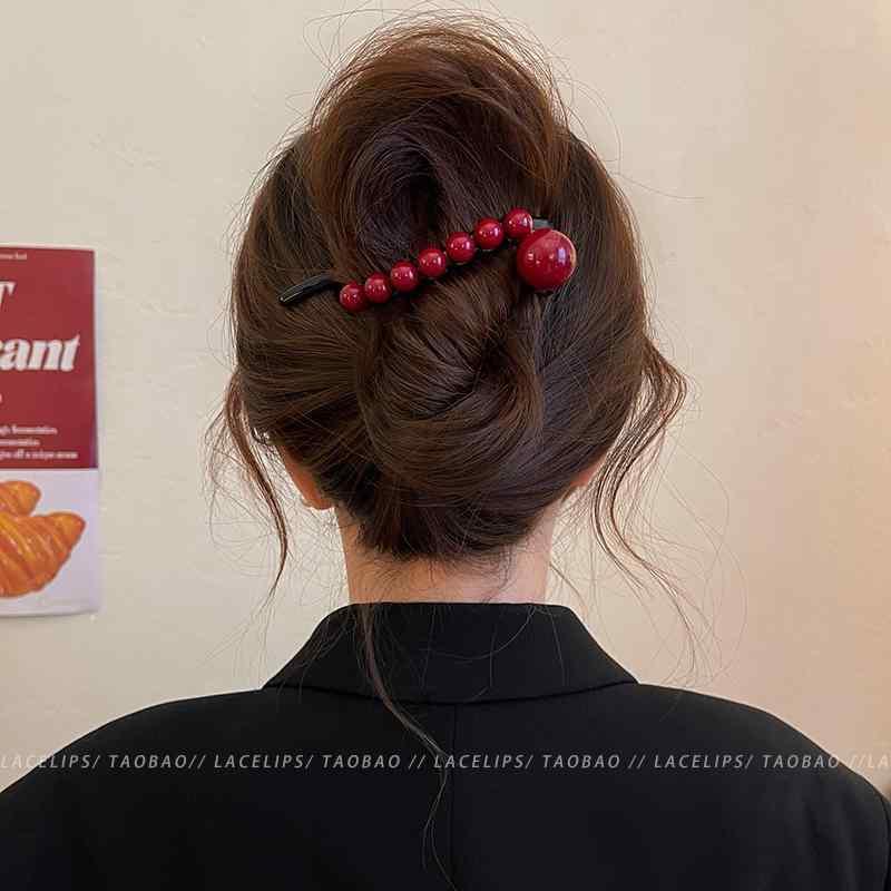 レディース ファッション レディース オシャレ 綺麗 アクセサリー Ancora レッド大 パール ワン ワード ツイスト クリップ ハイエンド後頭部 秋冬 ヘアキャッチャー