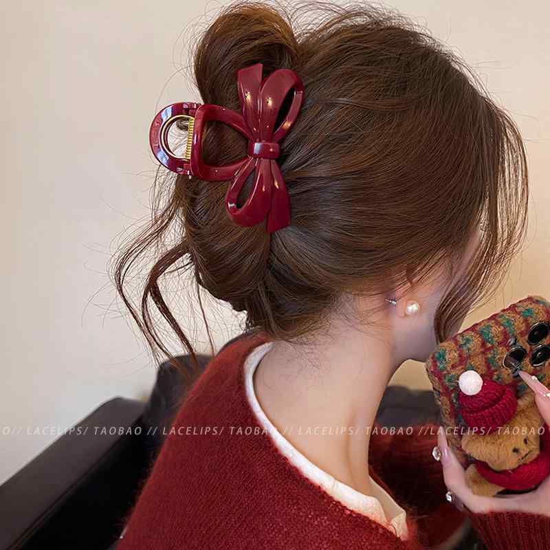 レディース ファッション レディース オシャレ 綺麗 アクセサリー Ancora レッド リボン ヘア クリップ 秋冬 サメ ハイエンド アクセサリー