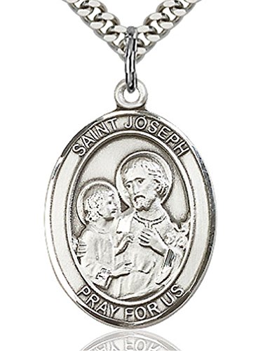 【中古】【未使用・未開封品】Heartland Engravable Men 'sスターリングシルバーSaint Josephオーバルメダル+カスタマイズ+選択チェーン