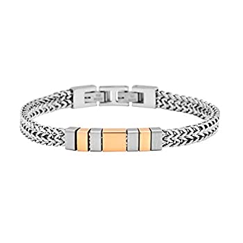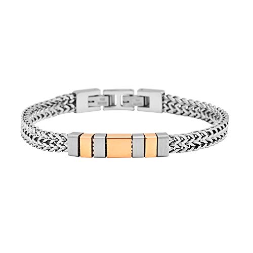 【中古】【未使用・未開封品】[男性用ブレスレット]Geoffrey Beene Men's Stainless Steel Double Franco Chain Bracelet with Cut-Out ID and Extension, Silver/Rose Gold[