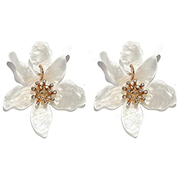 【中古】【輸入品・未使用】Tiande ボヘミアン ラグジュアリー 特大サイズ 樹脂製 大きな花のピアス レディース ステンレススチール クリスタルジュエリー ホワイト
