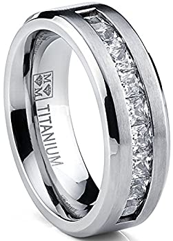 【中古】【輸入品・未使用】(R 1/2) - Ultimate Metals Co. Titanium Men's Wedding Band Engagement Ring with 9 large Princess Cut Cubic Zirconia CZ%カンマ% Comfort Fit%