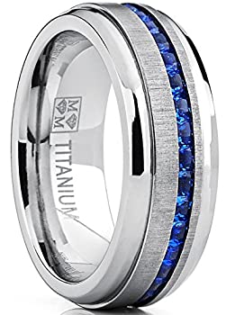 【中古】【輸入品・未使用】(V 1/2) - Ultimate Metals Co. Men's Eternity Titanium Wedding Band Engagement Ring W/Blue Simulated Sapphire Cubic Zirconia Princess CZ