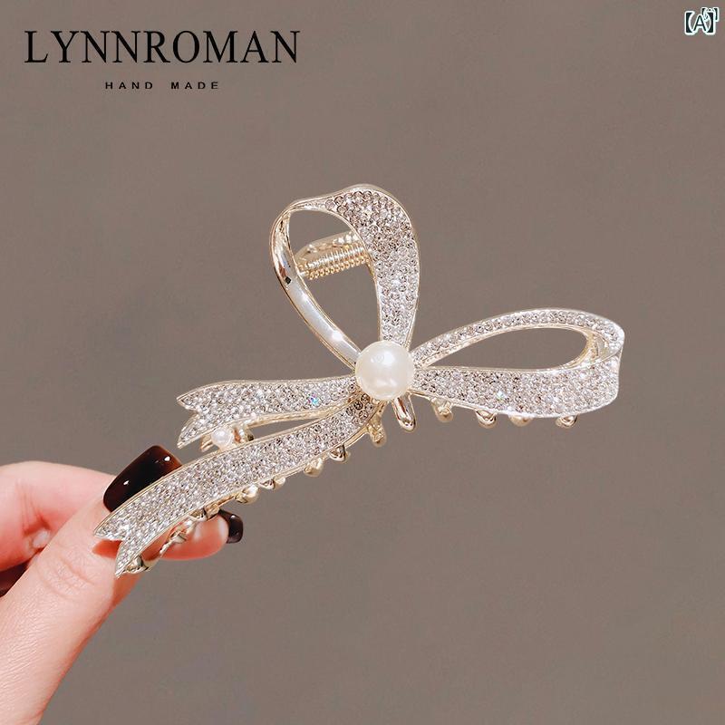 レディース アクセサリー 小物 かわいい 綺麗 ファッション オシャレ LYNNROMAN ハイエンド パール ラインストーン ボウ クリップ レディース ラージ ヘアピン バック ヘッド サメ