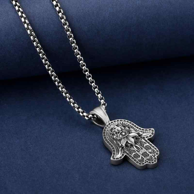 ネックレス メンズ 男性用 ファティマの手 ハムサ イーブルアイ 邪視 ペンダント ステンレス製 ボックスチェーン 個性的 ストリート ヒップホップ アクセサリー