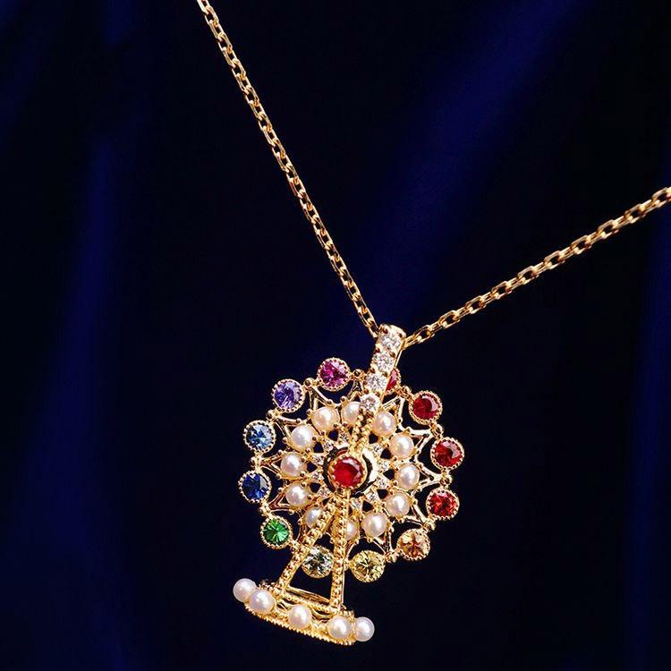 ネックレス レディース 幸福観覧車 モチーフ カラージルコニア ペンダント 銅製 鎖骨チェーン デコルテ ファッション 高級感 エレガント 上品 きれいめ オフィス カジュアル 普段使い