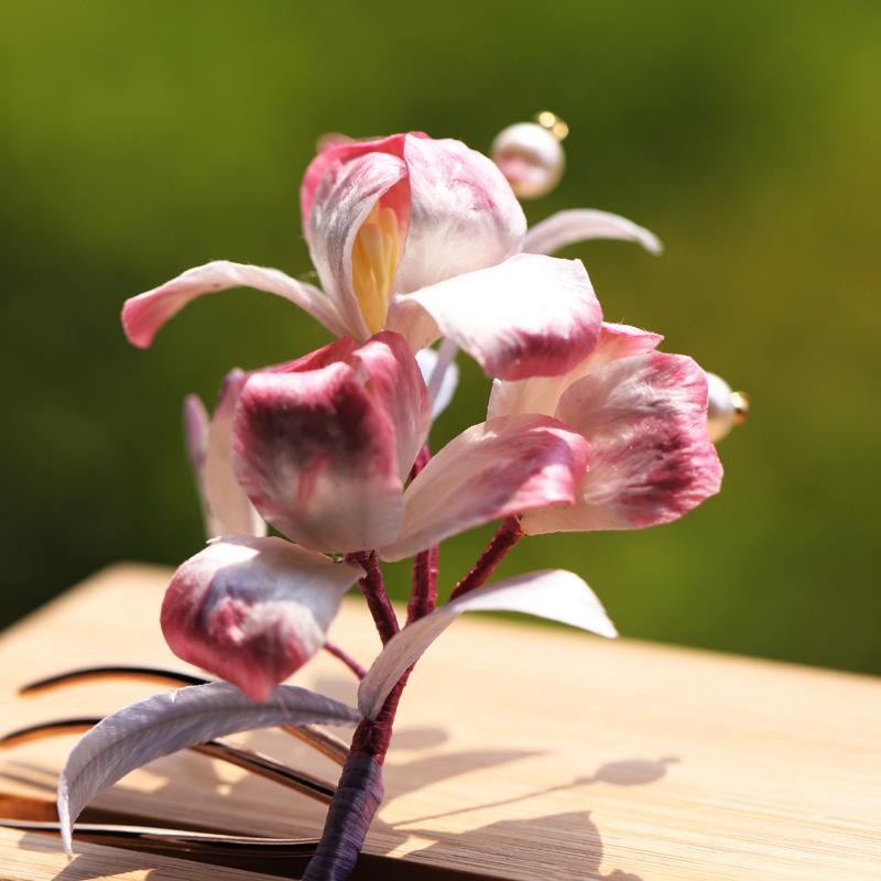 髪飾り 蚕糸 シルク ベルベット 花 手作り 中華風 エスニック レトロ アンティーク エレガント フェミニン 上品 漢服 チャイナドレス 結婚式 パーティー 舞台 和装 ヘアコーム かんざし ヘッドドレス