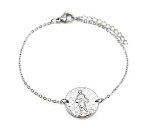 【送料無料】ブレスレット アクセサリ— メダルスチールチェーンブレスレットシルバーアクエリアスサインインbc3321ffine steel chain bracelet silver with charm medal aquarius sign