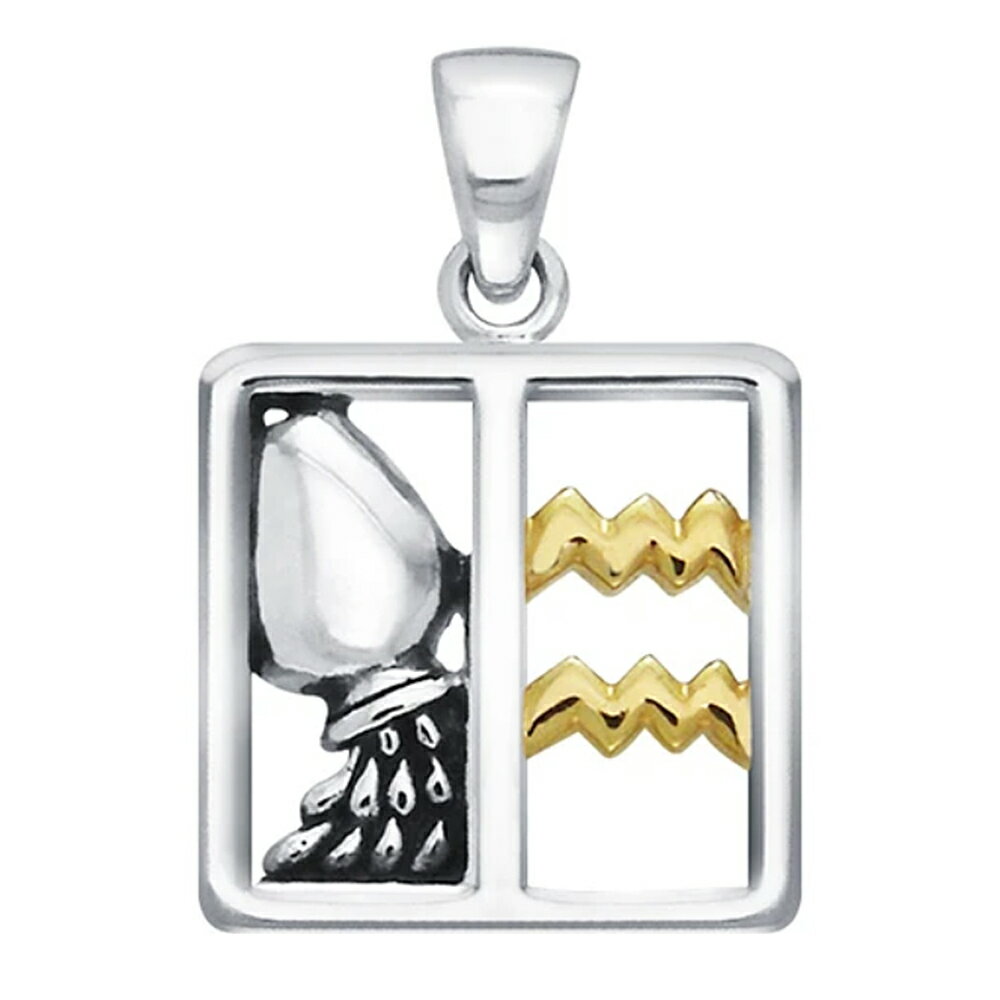 【PETER STONE】黄道十二星座 水瓶座(Aquarius) シルバー&ゴールドプレート ペンダントトップ 1月20日~2月18日生まれ 西洋占星術【送料無料♪】
