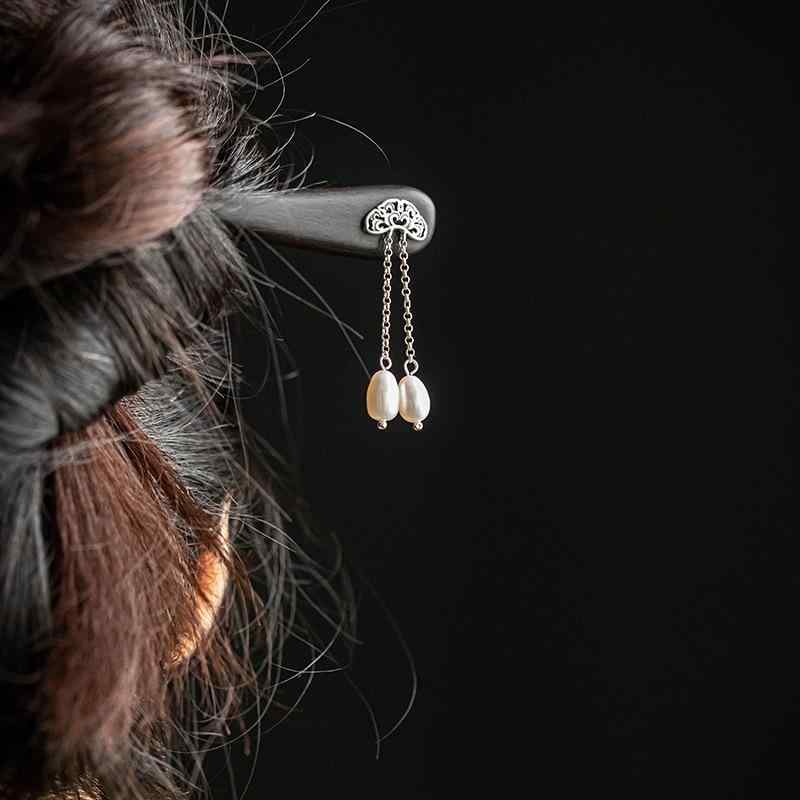 紫 白檀 ヘアピン パール タッセル モダン シンプル 木 銀 ヘアピン レトロ 漢服 ステップシェイク かんざし 着物