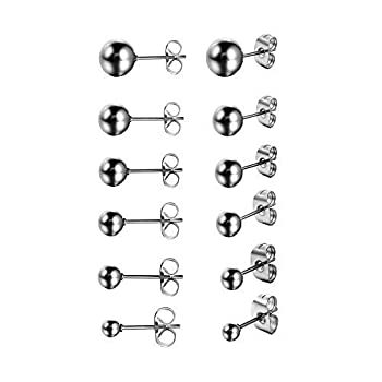 【中古】【輸入品・未使用】Oidea 12pcs Wholesale Assorted Size 3-8MM Mens Punk Stainless Steel Round Ball Stud EarringsSilverHypoallergenic