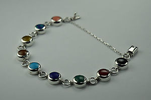 【送料無料】ブレスレット アクセサリ— スターリングシルバーラウンドリンクブレスレット925 sterling silver assorted stones round link bracelet women jewelry