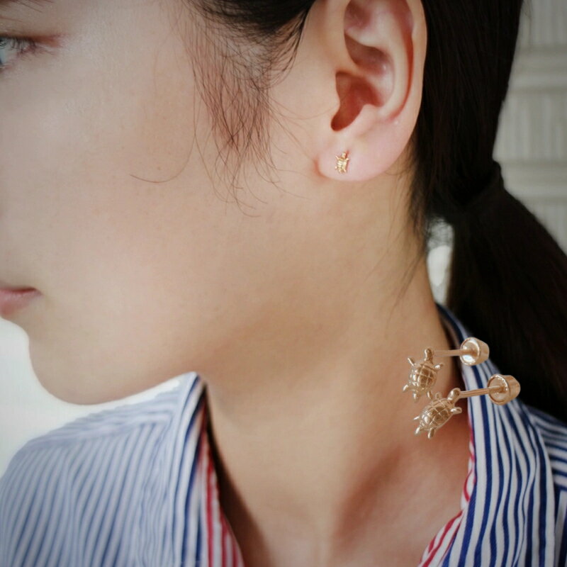 LA直輸入14K ピアス 亀 turtle Assorted Stud Earrings カリフォルニアゴールド 14金 資産価値 シンプル レディース メンズ プレゼント 本物 保証付き ST272LA直輸入14K ピアス 亀 turtle Assorted Stud Earrings カリフォルニアゴールド 14金 資産価値 シンプル レディース メンズ プレゼント 本物 保証付き ST272 「守り神・ホヌ」がそっと寄り添う、14金のピアス。 ARTAUMがセレクトした、カリフォルニア直輸入の14Kゴールドピアス。 ウミガメ(ホヌ)は古くからハワイなどでも「海の守り神」「幸運を運ぶ存在」として親しまれている神聖なモチーフです。 男女問わず身につけられる小ぶりなデザインながら、その立体感とディテールはまさに本物。カジュアルファッションに合わせるだけで、こなれ感のある洗練された雰囲気を演出してくれます。 素材は本物の14金。金メッキではなく、長年の使用に耐えうる確かな品質。14Kの刻印もしっかりと施されており、ジュエリーとしての資産価値も保証されています。 *普段着にもなじむシンプルデザイン *日本人の肌にも合う、柔らかく上品な色味のイエローゴールド *スクリューバックタイプでしっかり固定&落としにくい構造 ファッションの一部としてだけでなく、守護・幸運・長寿などの願いを込めたお守りジュエリーとしても人気です。 【ギフトにも安心】 発送時にはARTAUMオリジナルジュエリーボックスにお入れし、素材を証明する保証書付きでお届けいたします。誕生日や記念日、クリスマスなど、大切な人へのプレゼントにもぴったりです。 “シンプルだからこそ、本物を。” ARTAUMは、本物の価値をカジュアルに楽しむライフスタイルを提案します。