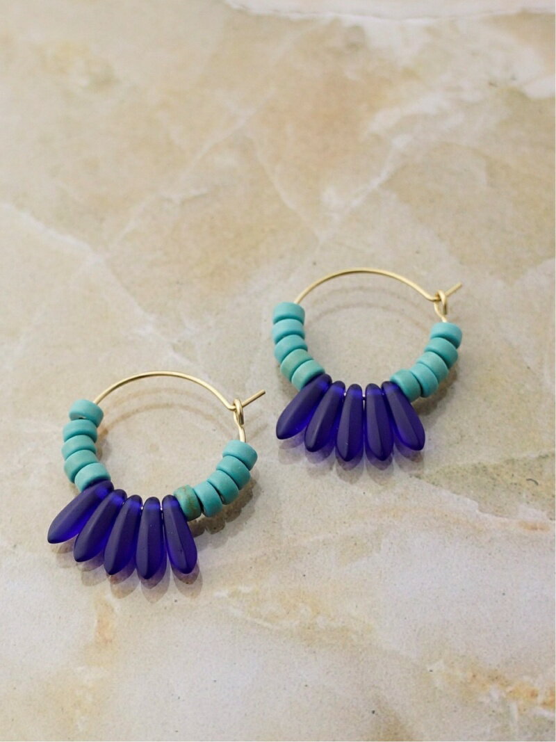 KU-CROISSANT KU-CROISSANT/(W)"【DAVID AUBREY】ストーンフープピアス zelda COLLECTION" クークロワッサン アクセサリー・腕時計 ピアス ブルー【送料無料】