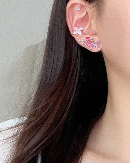 # 耳たぶはピアス、上にはイヤーカフとして着用できるようにフック付きで着用すると華やかな感じでいっぱいのイヤーカフです 全体がキュービックで構成され、華やかで輝いています! 片方だけのポイントで着用すると本当に可愛くて派手なものが好きな方にお勧めです:) # シルバー針 #COLOR ピンク、ホワイト #SIZE 1.5 x 4 cm