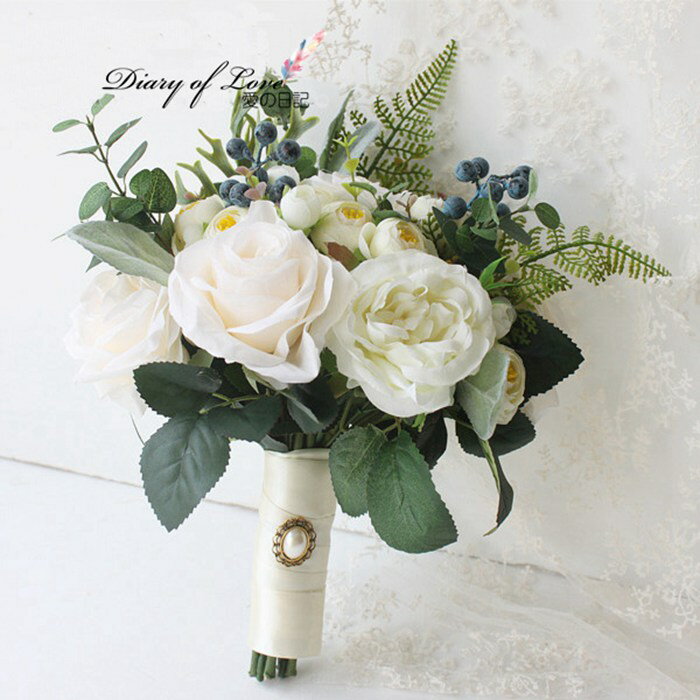 ブライダルブーケ 造花【bouquet】結婚式 ブライダル フラワー 白バラ ウェディングブーケ ホワイト【造花・ウェディングブーケ・ブライダルブーケ・ウエディングブーケ】教会 ドレス チャペル 花嫁 写真撮り 結婚式 結婚祝い 贈り物 フラワーギフト バラ 花束 おしゃれ